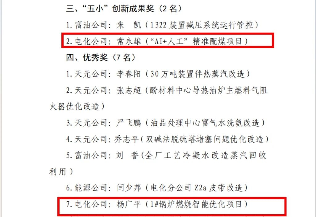 喜报!电化公司两个项目荣获神木煤化工公司“五小”创新成果奖和优秀奖