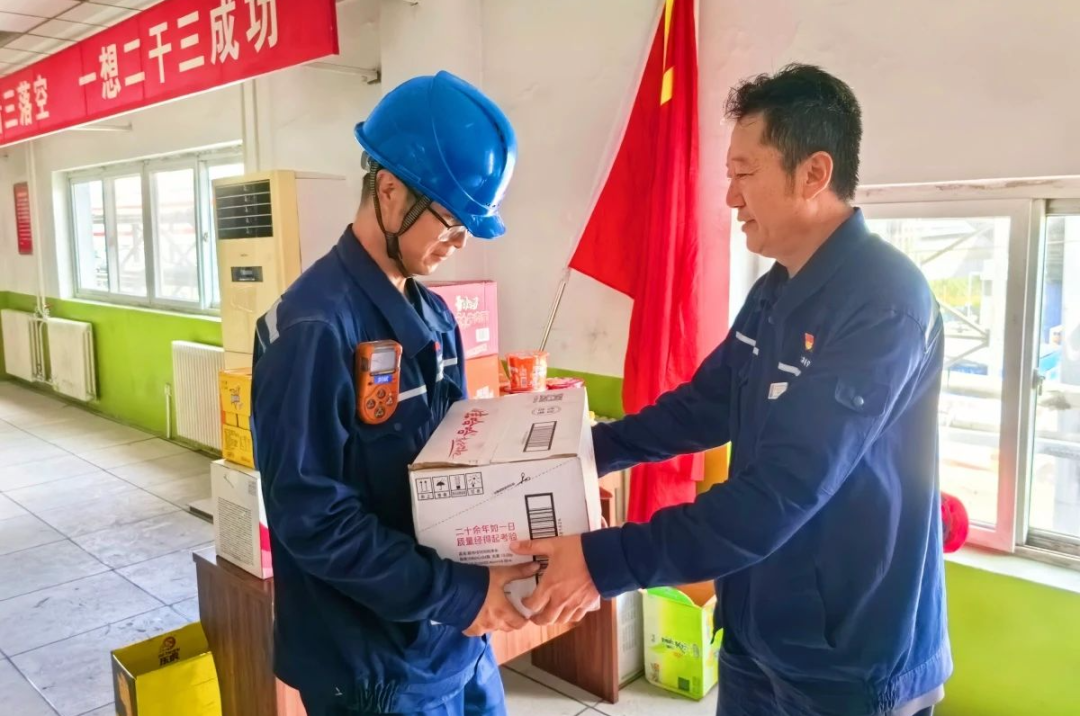 “大家辛苦了!”“千万要注意安全啊!”鲜红的党旗飘扬在电石车间的检修现场。党支部书记杨永胜将一箱箱茶饮品、矿泉水、方便面等慰问品送到一线检修员工的手中,对他们的辛勤付出表示感谢,并深切嘱咐大家要做好个人防护,注意劳逸结合,同时强调要紧紧围绕技术管理、安全布控、进度落实、质量保证等方面工作,落实主体责任、强化分工协作,杜绝违章作业,切实保障各项检修任务圆满完成。
