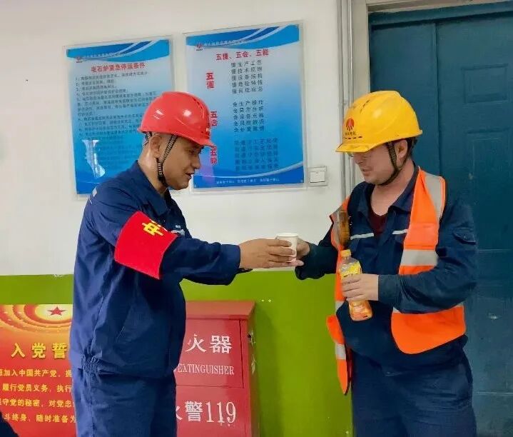 在本次检修志愿服务活动中,电石炉一、二、三工段,公辅工段、电仪工段、机修工段、生产运行党小组、工艺服务党小组、安全应急党小组的志愿者们在检修现场为工作人员冲泡咖啡等饮品,确保饮水供给充足,保持志愿服务点及检修现场的卫生干净整洁,同时负责检修现场物资的保管,并配合车间开展相关检修慰问活动。