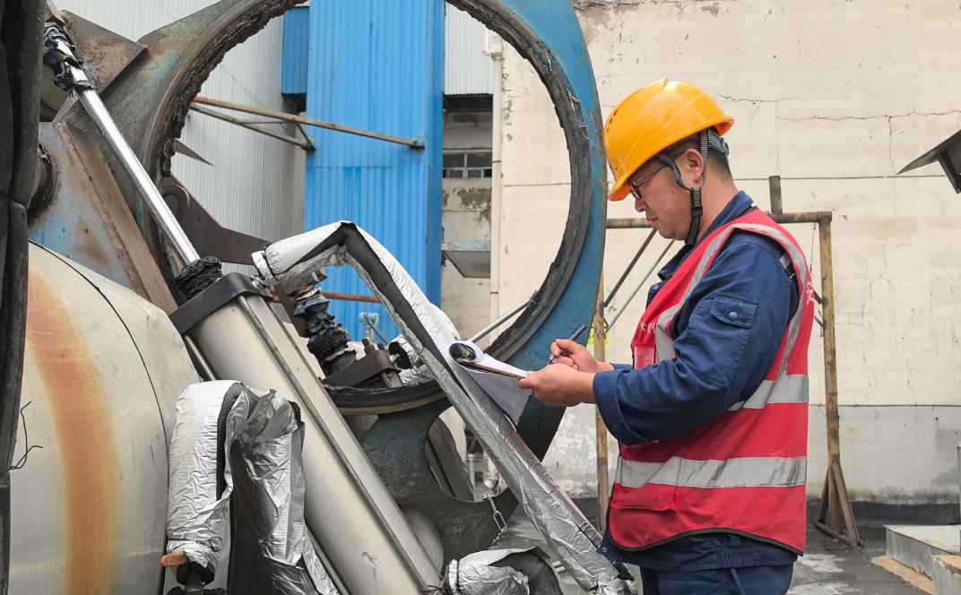 李庭作为大修期间防磨防爆小组的重要成员,他负责受热面减薄部位更换、补焊工作的全过程监管。他全副武装、满身灰尘正蹲在炉膛内认真检查浇注料的施工情况,不放过任何细节。据了解,浇注料检查是锅炉检修过程中隐蔽工程验收的一项大工程,技术人员需要对受热面浇注料的完整性、厚度、均匀性等进行全面排查,以保证隐蔽工程施工质量合格和后续施工的顺利进行,从而保障锅炉的安全运行。李庭作为车间技术员,在大修期间他始终保持昂扬斗志与干劲,积极参与到检修工作中,他穿梭在各个检修点,对作业区域进行检查,对每一道工序了然于心。李庭说:“检修工作不能出一点差错,我亲自看到全部工作都做好了,才能放心”。