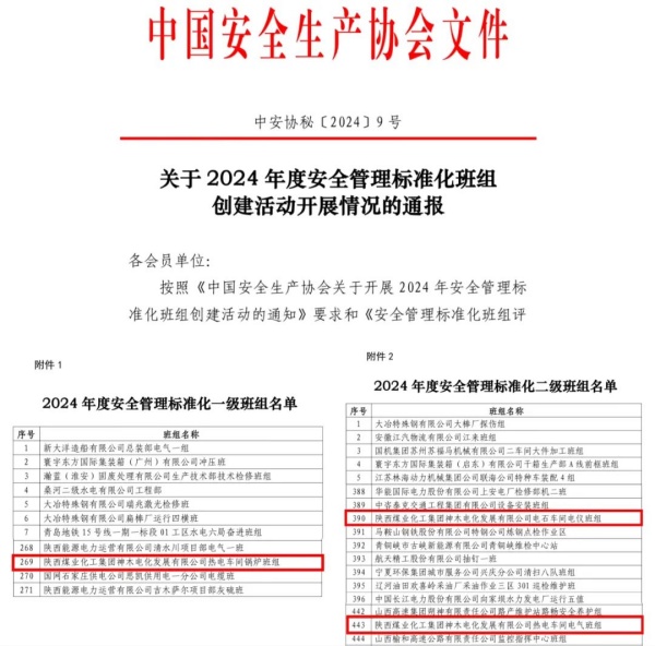 近日,中国安全生产协会发布《关于2024 年度安全管理标准化班组创建活动开展情况的通报》,电化公司榜上有名!公司热电车间锅炉班组获评全国 “2024年度安全管理标准化一级班组”荣誉称号,热电车间电气班组、电石车间电仪班组获评全国 “2024 年度安全管理标准化二级班组”荣誉称号,刘伟获评“优秀班组长”荣誉称号。
