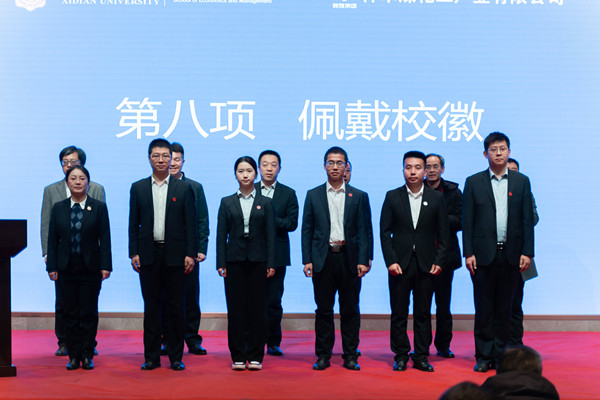 开学典礼上,西安电子科技大学经济与管理学院与神木煤化工公司举行了MBA实践教学基地揭牌仪式,学院副院长谢永平为2022级新生授旗、佩戴校徽。2021级校友康孝利发言作为在校生代表发言;屈海飞作为新生代表发言。
